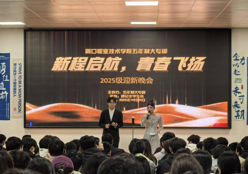 金秋送爽,丹桂飘香,我们怀揣着同样的喜悦与期盼,于本周隆重举行了2025年迎新晚会。本次晚会旨在欢迎2025级新同学的到来,为他们开启崭新的大学生活献上第一份精彩的贺礼。本场晚会节目形式多样,内容丰富多彩,为观众们带来了一场酣畅淋漓的视听盛宴。晚会不仅是一场才艺展示,更是一次深刻的情感教育与集体融入仪式。新的篇章已经开启,新的征程就在脚下。愿2025级全体新生能带着今晚的这份感动与激情,在周口职业技术学院这片沃土上,乘风破浪,扬帆起航,书写属于自己的无悔青春!