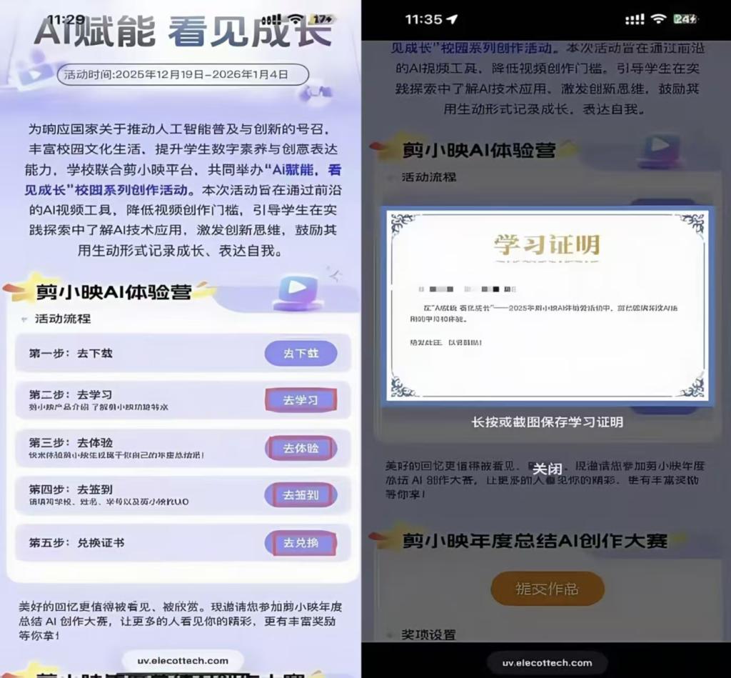 2.周口职业技术学院组织开展的“AI赋能 看见成长”数字素养提升活动通过引入“剪小映”AI训练营,为同学们提供了一个接触前沿技术、提升数字技能、展示创意才华的平台。活动整体组织有序、内容实用、参与度较高,达到了预期的育人目标,为同学们的成长成才提供更加丰富、多元的学习与实践机会,助力大家在数字时代更好地“看见成长、成就自我”。
