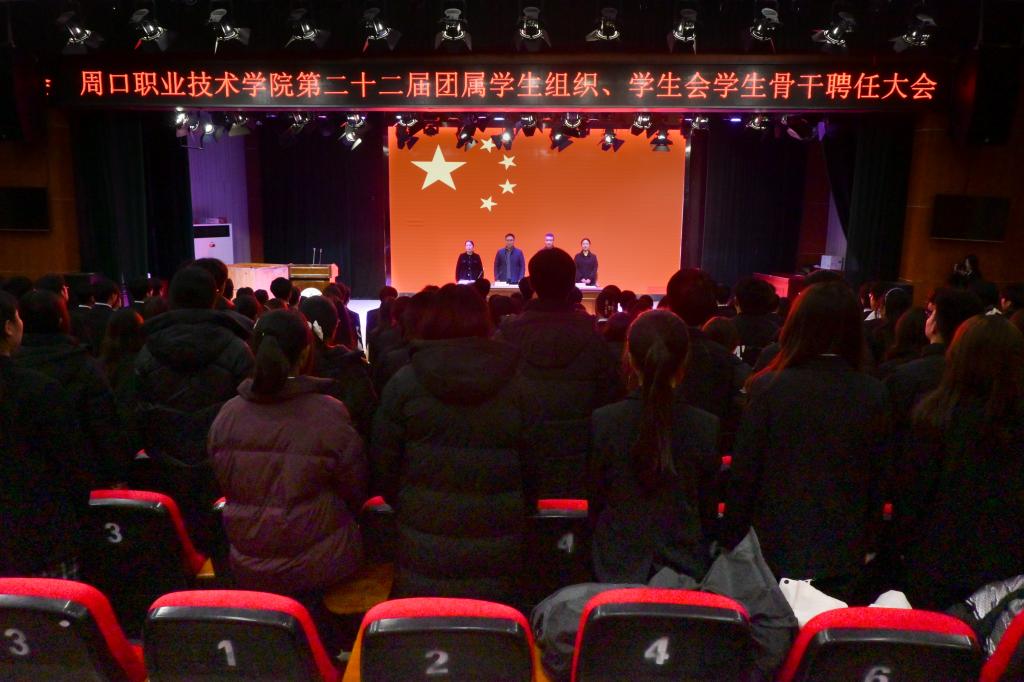 2025年12月12日,周口职业技术学院第二十二届团属学生组织、学生会学生骨干聘任大会在开元校区励德厅召开。团委全体老师及200余名学生骨干参加此次活动。本次大会由校团委副书记孙配显主持。